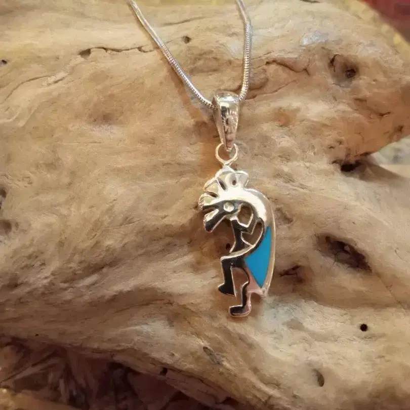 실버 925 터콰이즈, 코코펠리 요정, 수호신 펜던트, 목걸이, 네이티브