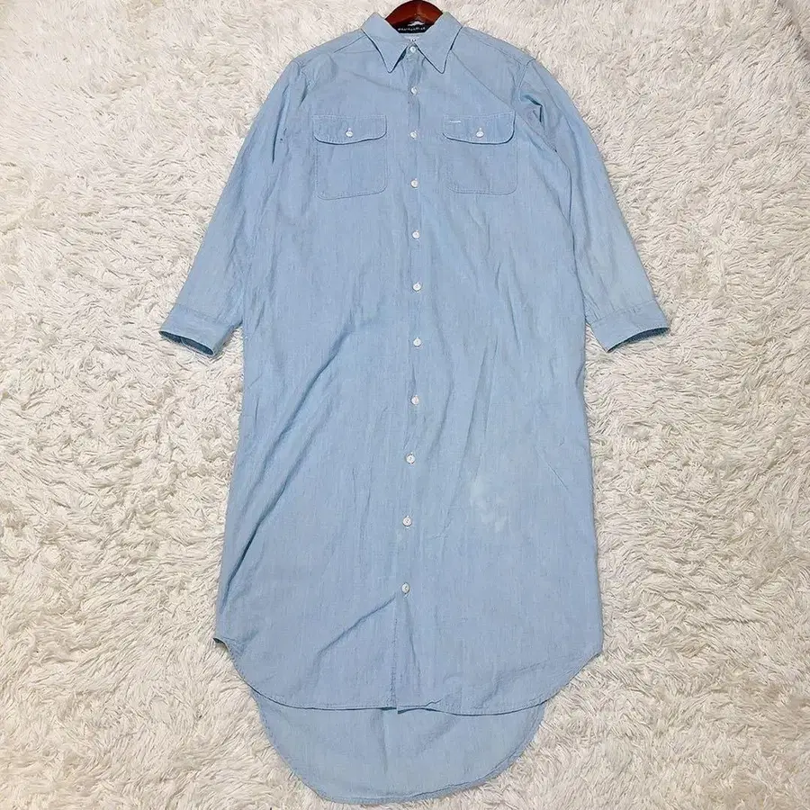 • soulberry 칠부 소매 셔츠 원피스 롱 기장 루즈핏 데님 블루 M