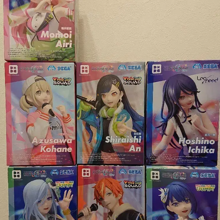 프로세카 피규어 세트 - 피규어 이름: 모모이 아이리 - 피규어 이름: 아즈사와 코하네 - 피규어 이름: 시라이시 안 - 피규어 이름: 호시노 이카 - 피규어 이름: 히노모리 시즈쿠 - 피규어 이름: 아키토 - 피규어 이름: 키리타니 하야