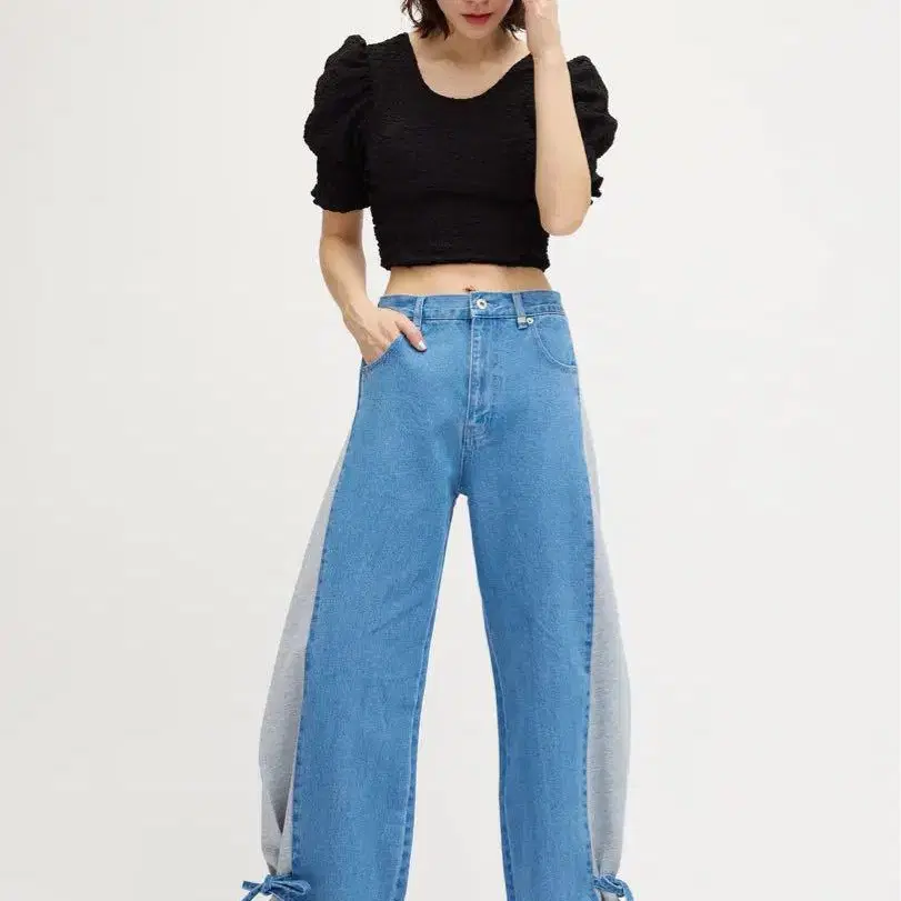 측면 스위치 2웨이 리본 데님 팬츠