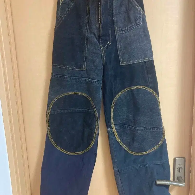 론 헤르만과 cityshop에서 취급하는 wildrootz의 데님입니다. 사이즈는 S 사이즈로, 161cm인 제가 입으면 바닥에 닿을 정도의 길이입니다. 빈티지 데님을 리메이크한 제품이므로 원래 색이 바래진 부분이 있습니다. 개인 집에서 보관하고 있으므로 예민하신 분은 구매를 삼가 주시기 바랍니다.
