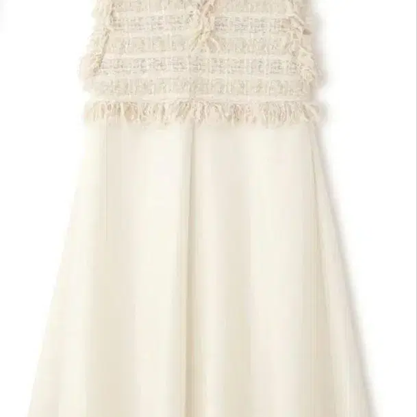아이보리 슬리브리스 롱 원피스, 프릴 디자인으로 엘레강트한 느낌.