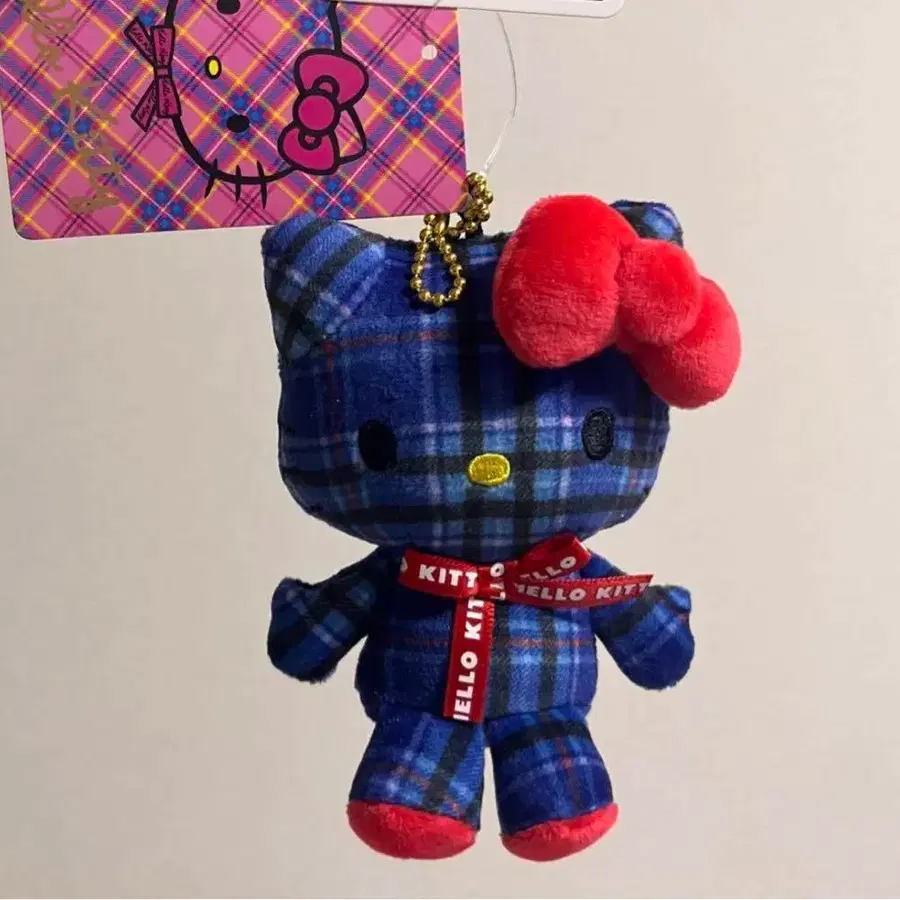 헬로키티 봉제 인형 마스코트 키체인 50주년 타탄 체크