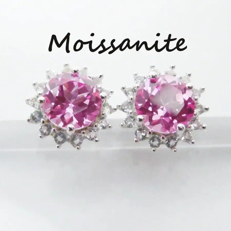 D 3EX 핑크 플라워 모이사나이트 컬러 모이사나이트 귀걸이 양쪽 귀용