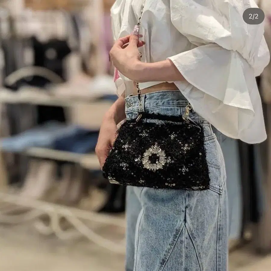 snidel 비즈 장식 블랙 퍼 스타일 클러치 백