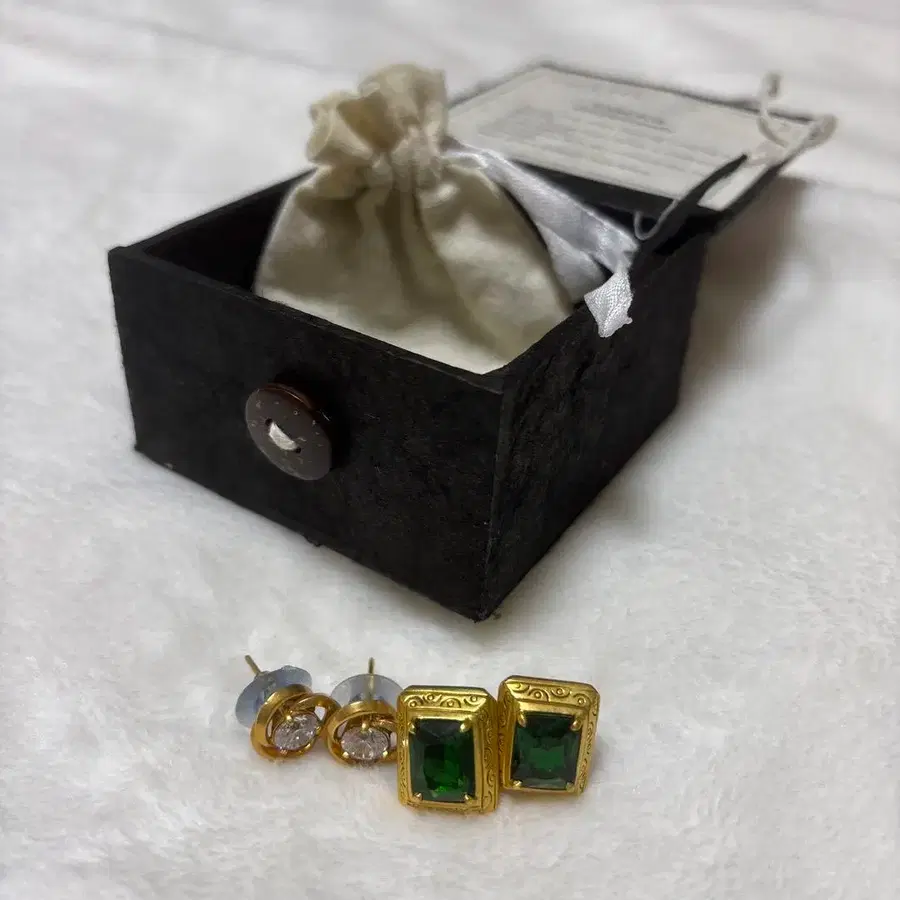 그린과 클리어 스톤을 사용한 스터드 귀걸이 세트. 원가는 2만 엔 정도였습니다. - 타입: 스터드 귀걸이 - 스톤 색상: 그린 - 스톤 색상: 클리어 - 부속품: 오리지널 박스 - 디자인: 스퀘어 컷 - 디자인: 라운드 컷 방문해 주셔서 감사합니다. 낱개 판매도 가능합니다.