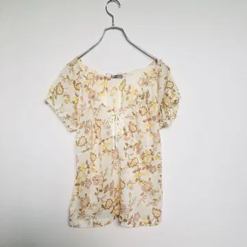 • 개성있는 튜닉 반팔 나팔소매 프릴 A라인 그린 브라운 화이트 M 봄/여름