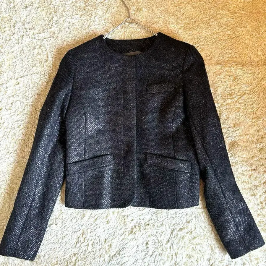 미사용 택 포함 띠어리 럭스 자켓 비익 버튼 38 M 그레이 광택 칼라 없음 포켓 있음