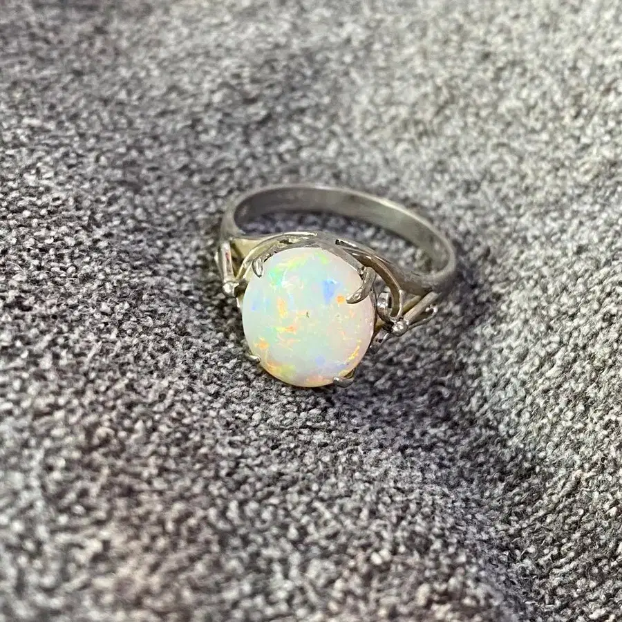 오팔 반지입니다. 약 13호 유즈드 상품이므로 예민하신 분은 구매를 삼가 주시기 바랍니다.