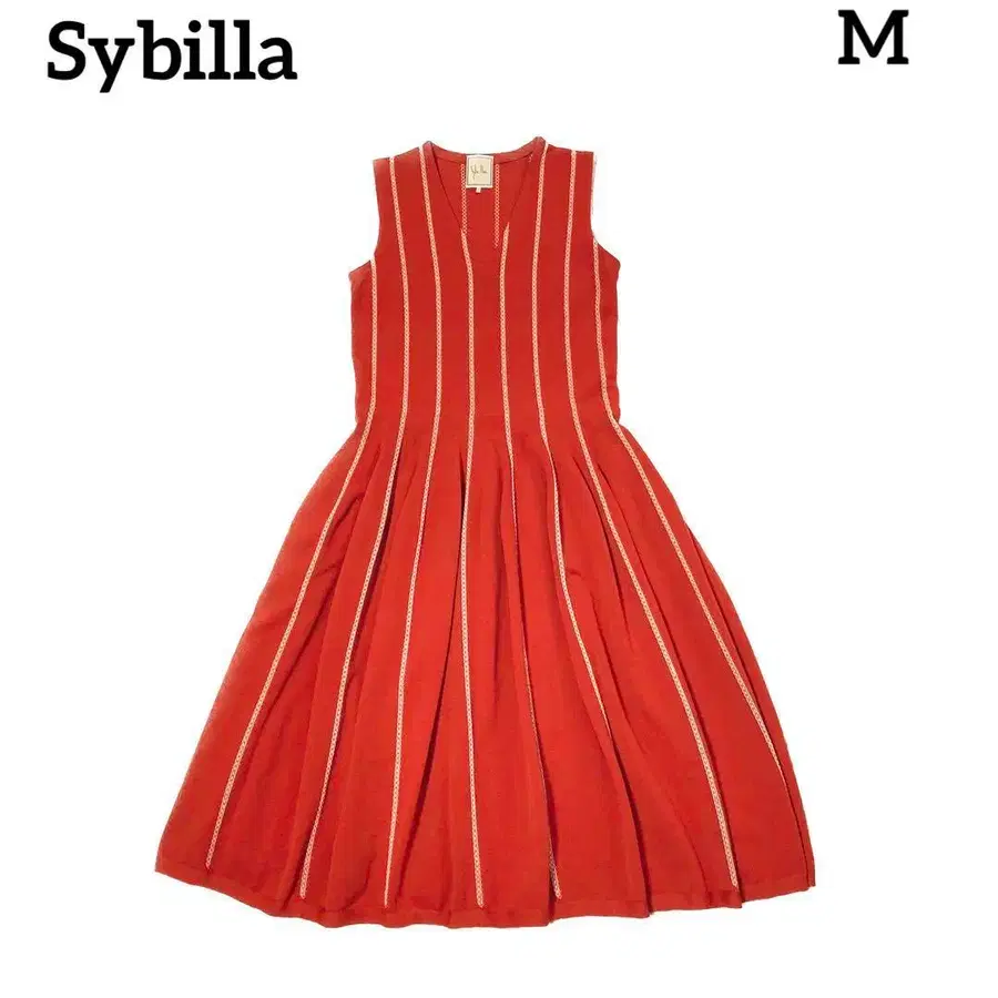 원피스 니트 스트라이프 V넥 슬리브리스 A라인 플레어 무릎 아래 길이 워셔블 세탁 가능 썸머 일본산