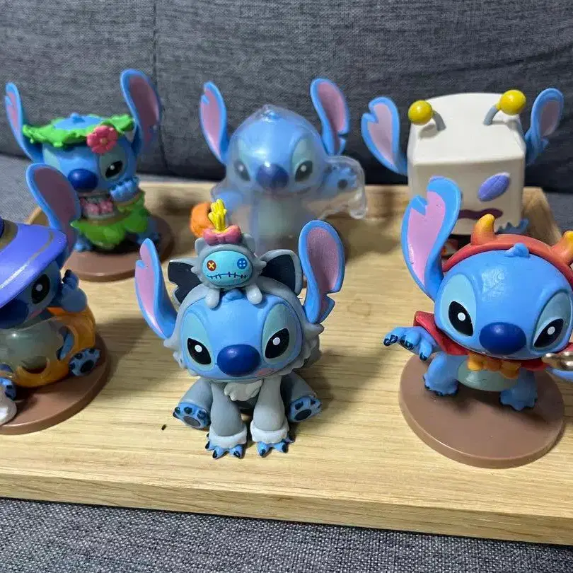 다양한 코스튬을 입은 스티치의 컬렉션 피규어 6체 세트.