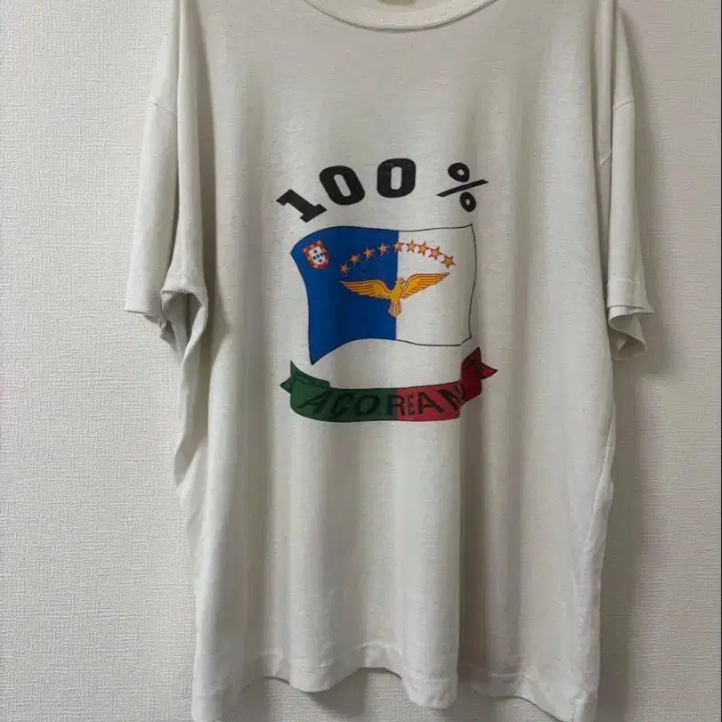 포르투갈 국기 디자인이 특징인 100% ACOREANA T셔츠. 어깨 너비 56 가슴 둘레 61 기장 63 - 디자인: 100% ACOREANA 프린트 - 컬러: 화이트 - 그래픽: 포르투갈 국기 디자인 - 사이즈: 불명 (택에 기재 없음) 방문해 주셔서 감사합니다.