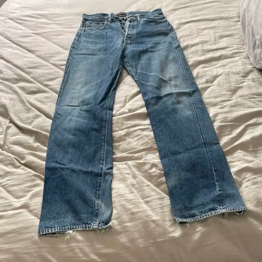리얼 맥코이 스트레이트 데님 라이트 블루 프린지 밑단