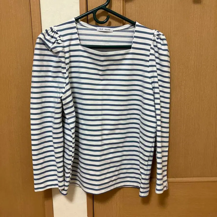 블루 팔랑 보더 퍼프 소매 티셔츠