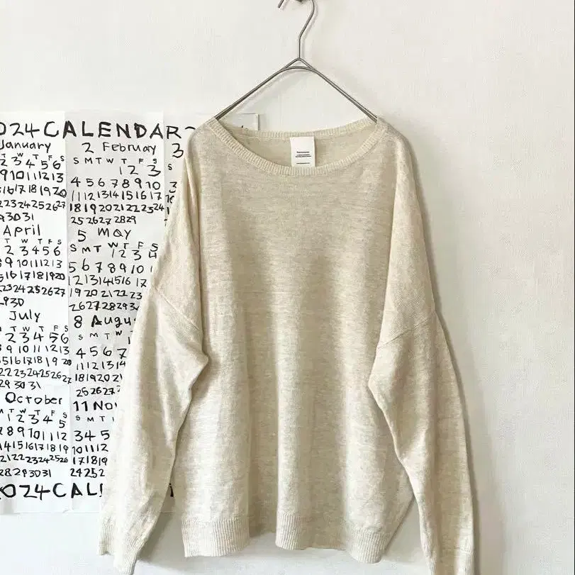 비침이 있는 부드러운 얇은 슬라브 니트 소재로 제작된 넉넉한 기장의 풀오버 니트입니다.