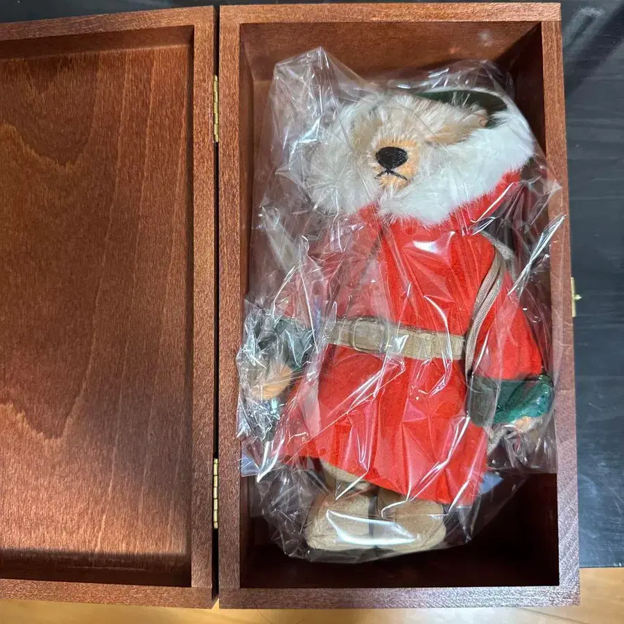 퍼가 달린 코트가 귀여운 봉제 인형으로, 미개봉 상태입니다.