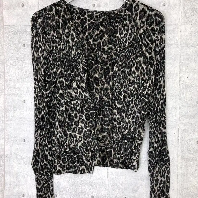 SPECCHIO 표범 무늬 아코디언 플리츠 버튼리스 긴팔 가디건