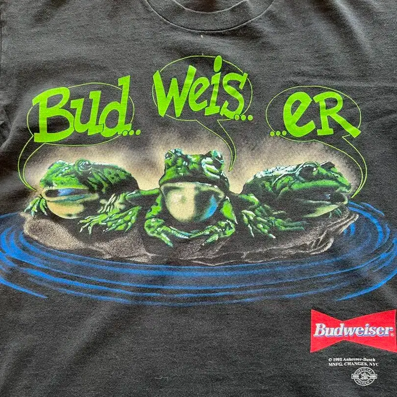 1995년 카피라이트의 세 마리 개구리 버드와이저 T셔츠입니다. 버드와이저라고 하면 이 개구리 T셔츠 이미지가 떠오르죠.