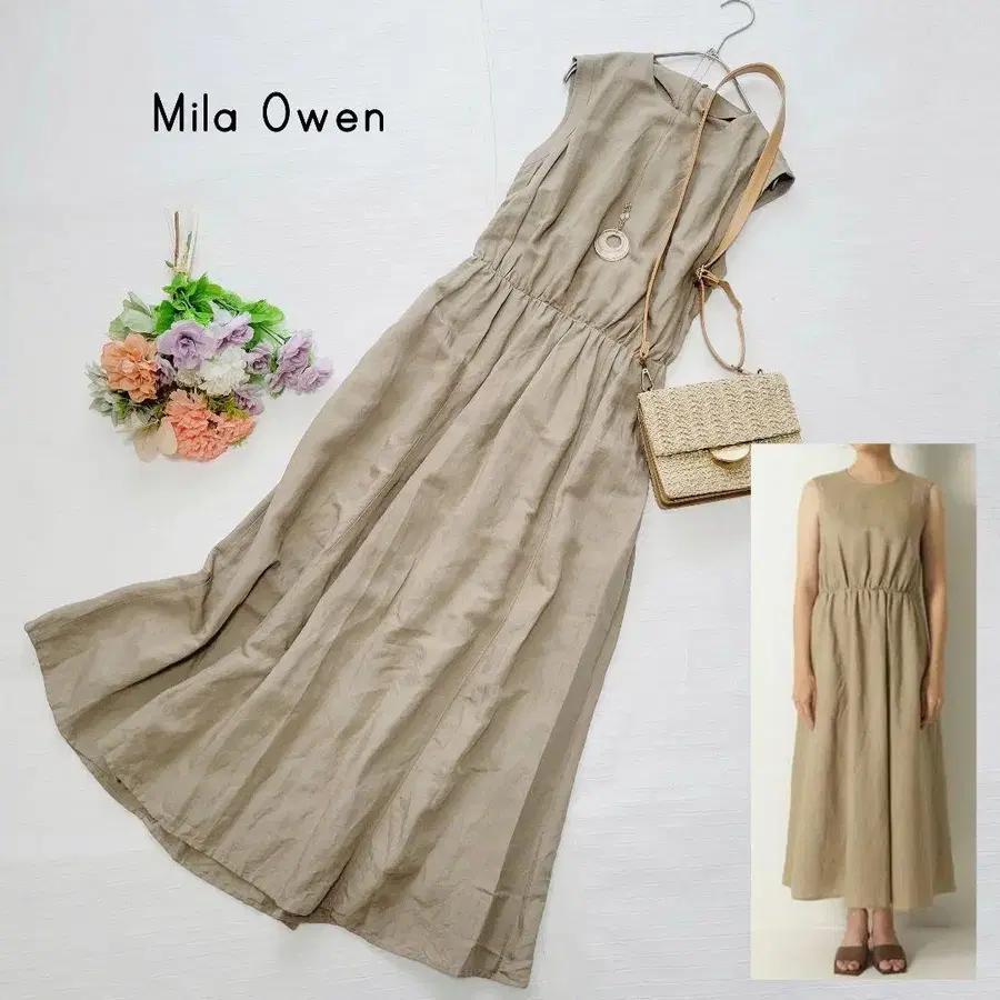 미라 오웬 * 백 오픈 롱 원피스 * 베이지 린넨, 레이온