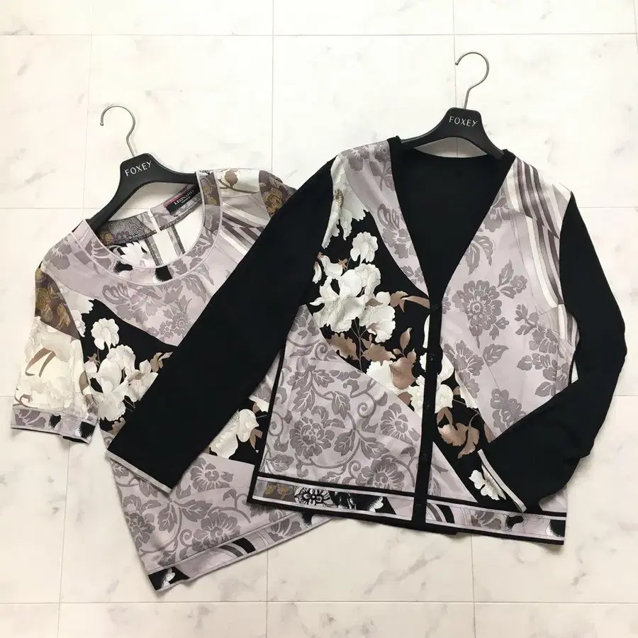 LEONARD 세계에서 가장 아름다운 레오나르의 프린트 디자인 촉감이 부드럽고 신축성이 풍부한 캉캉 스트레치 소재 니트와 함께 매치하면 매력적입니다. 클리닝 완료되었습니다. 사이즈 가디건 42 총길이 약 62cm 소매길이 약 56cm 옆기장 약 52cm 상의 40 총길이 약 59cm 소매길이 약 25cm 옆기장 약 48cm