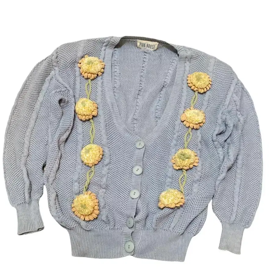 PINK HOUSE 꽃 입체 가디건 스카이블루 빈티지 블루
