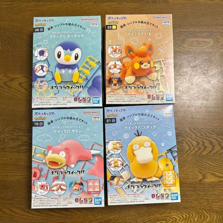 포켓몬 퀵 묶음 판매입니다. 색상이 있어 조립이 간단하고 심플한 프라모델입니다. 미개봉 새상품입니다. 팽도리, 파모, 코닥, 야돈 구입 후 어두운 곳에 보관했습니다.
