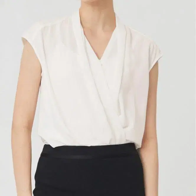 경량 소재의 화이트 랩 스타일 블라우스. 프렌치 슬리브