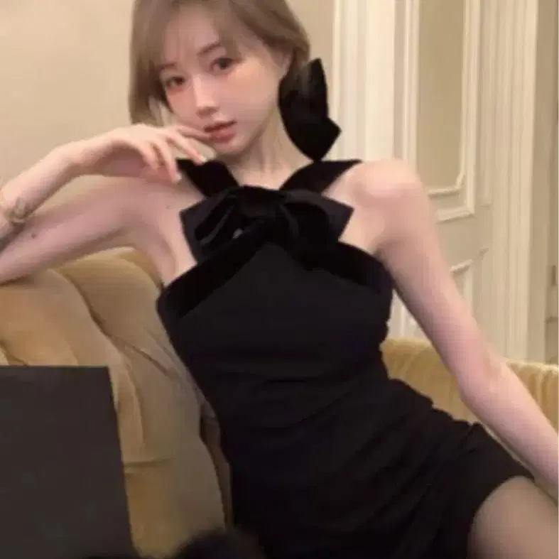 새상품 택 포함 벨로아 리본 포함 블랙 미니 원피스