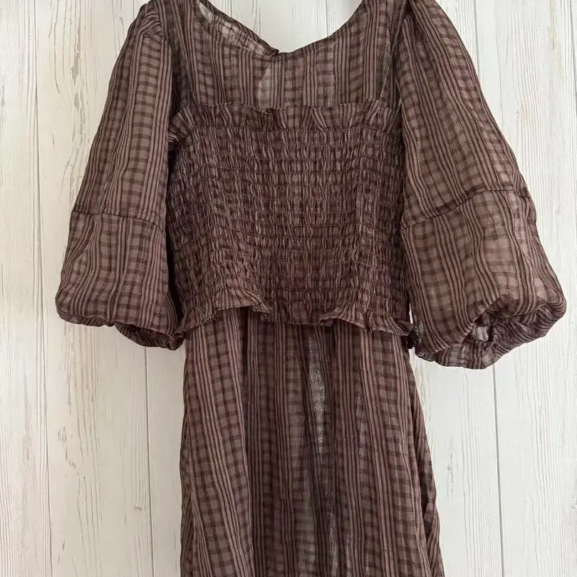 ~NICECLAUP 2023 early autumn Collection~ 시어한 느낌이 있는 튜닉에 셔링 뷔스티에가 세트로 구성된 아이템입니다. 비침이 있는 소재이므로 여름부터 가을 초까지 착용하실 수 있습니다. 소매는 볼륨감 있는 실루엣이며, 5부 소매 길이로 팔 둘레를 커버합니다. 튜닉은 엉덩이까지 덮는 디자인으로 넉넉한 실루엣이며, 물론 각각 단품으로도 활용 가능하여 돌려입기에도 좋습니다.