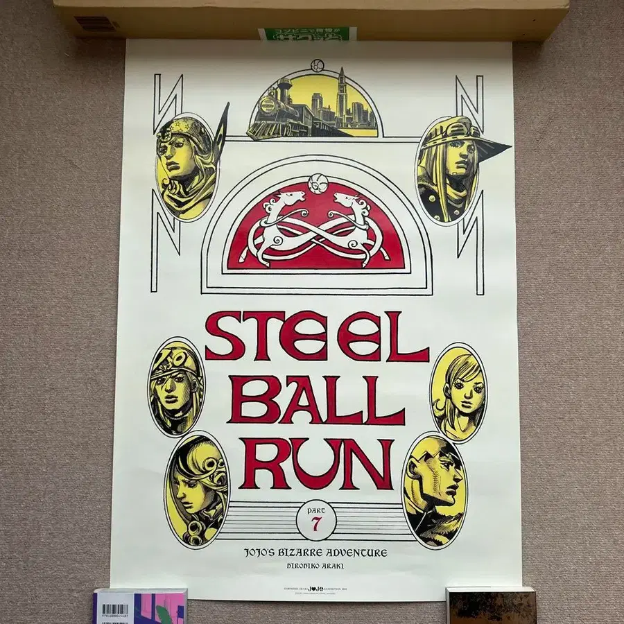 2012년에 개최된 죠죠 전의 공식 굿즈로, 자이로 젬페리와 조니 조스터 등이 그려진 B2 사이즈의 포스터입니다.