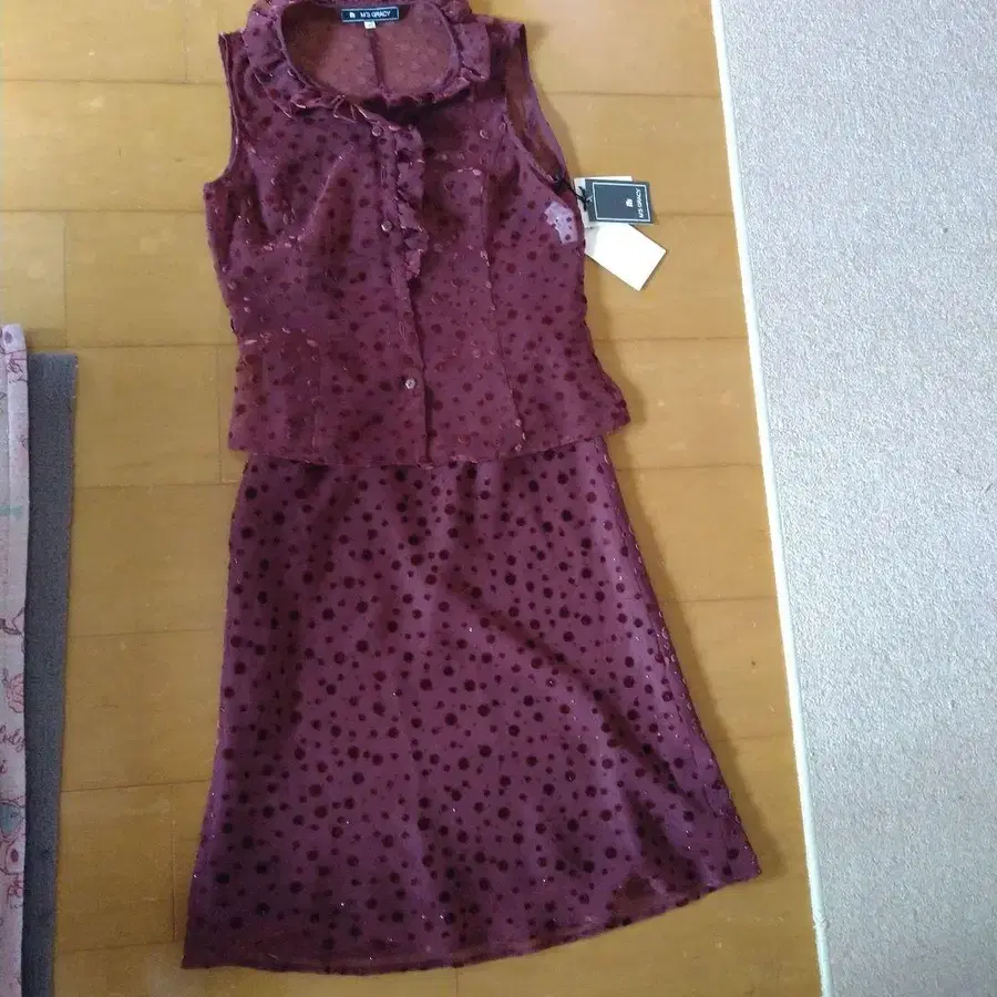 색상 와인 컬러 색상은 사진 4가 가장 비슷합니다. 사이즈 L(40) 블라우스 총길이 51cm 스커트 총길이 64cm 미사용이지만 자택 보관으로 체크는 하고 있지만, 누락 등이 있는 경우 양해 부탁드립니다.