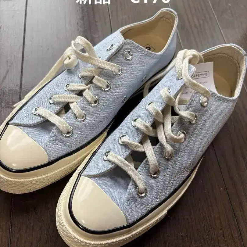 5월에 구입한 미사용 새상품입니다. - 모델명: CHUCK 70 OX CLOUDY DAZE - 색상: 하늘색 - 사이즈: 5.5 (245mm) - 디자인: 로우컷 스니커즈 - 소재: 캔버스 방문해 주셔서 감사합니다. 컬러···블루 계열 모델명···척테일러 실루엣···로우컷/OX 얼룩, 찢김, 냄새 등···없음