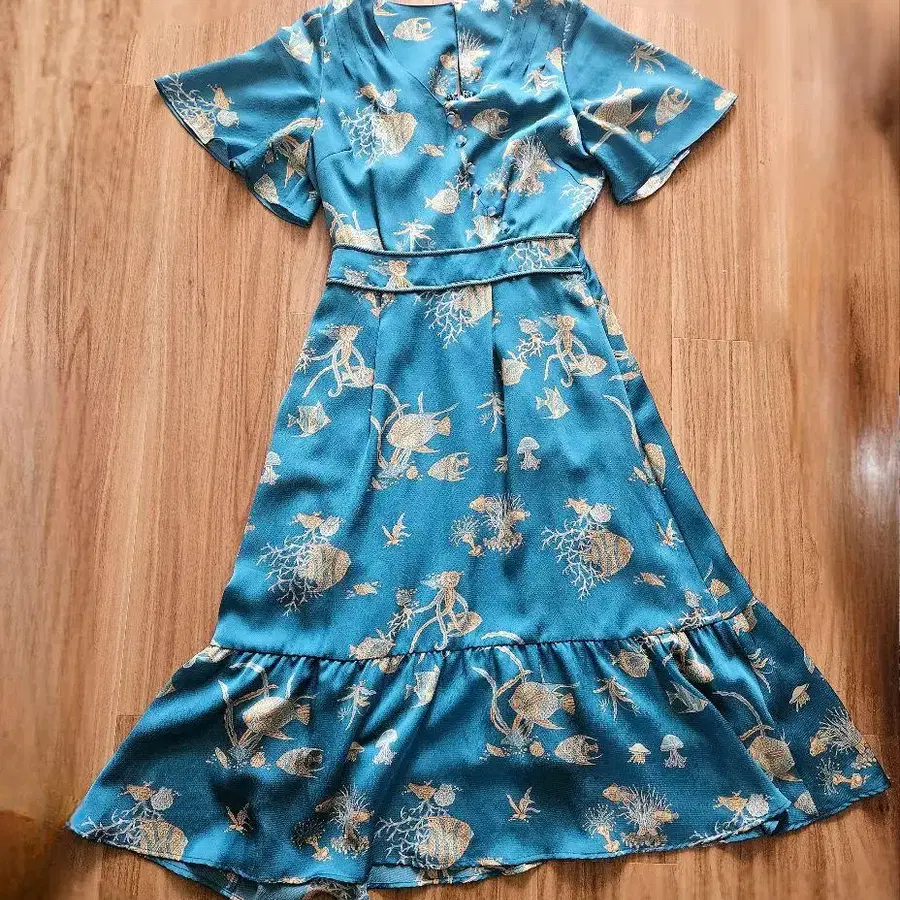 LILY BROWN 마린 패턴 원피스 사이즈: F 상품 설명 여성스러움이 돋보이는 코다와리 디자인] 여름에 어울리는 마린 패턴을 트렌디한 레트로 분위기로 성숙하게 완성한 미디 길이의 원피스. 플레어 슬리브와メリハリ가 있는 허리 리본 등, 계절의 스파이스를 가미한 원피스입니다. 카슈쿨풍의 디자인으로 데콜테를 깔끔하고 예쁘게 보여줍니다. 밑단에 전환을 넣어 풍성한 플레어를 연출. 서 있는 모습도 페미닌하게 결정됩니다. 몇 번 착용했습니다. 눈에 띄는 흠집이나 얼룩은 없다고 생각하지만, 중고품이라는 점을 양해 부탁드립니다. 즉시 구매 가능합니다.