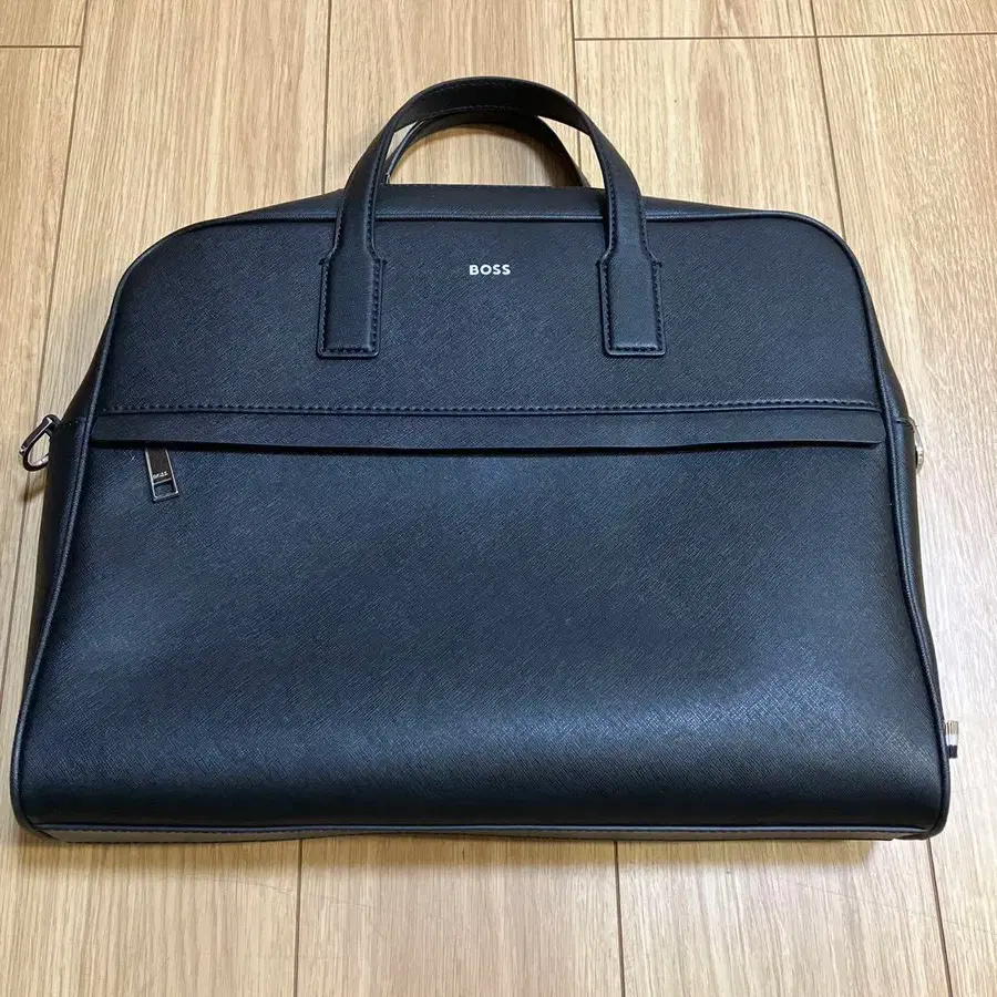 심플하고 스타일리시한 블랙 BOSS 비즈니스 가방.