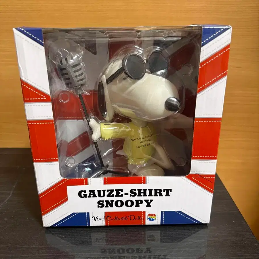 유니언 잭 디자인의 스누피 피규어, 마이크를 든 특별한 디자인.