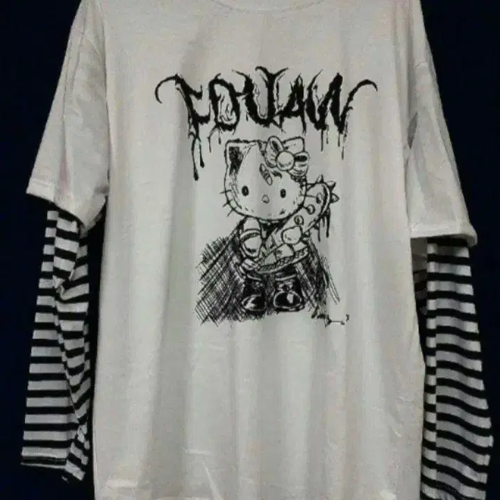 화이트×블랙의 보더에 고스로리 패션의 키티가 조합되어 고딕, 펑크 록 패션에 딱 맞습니다♪