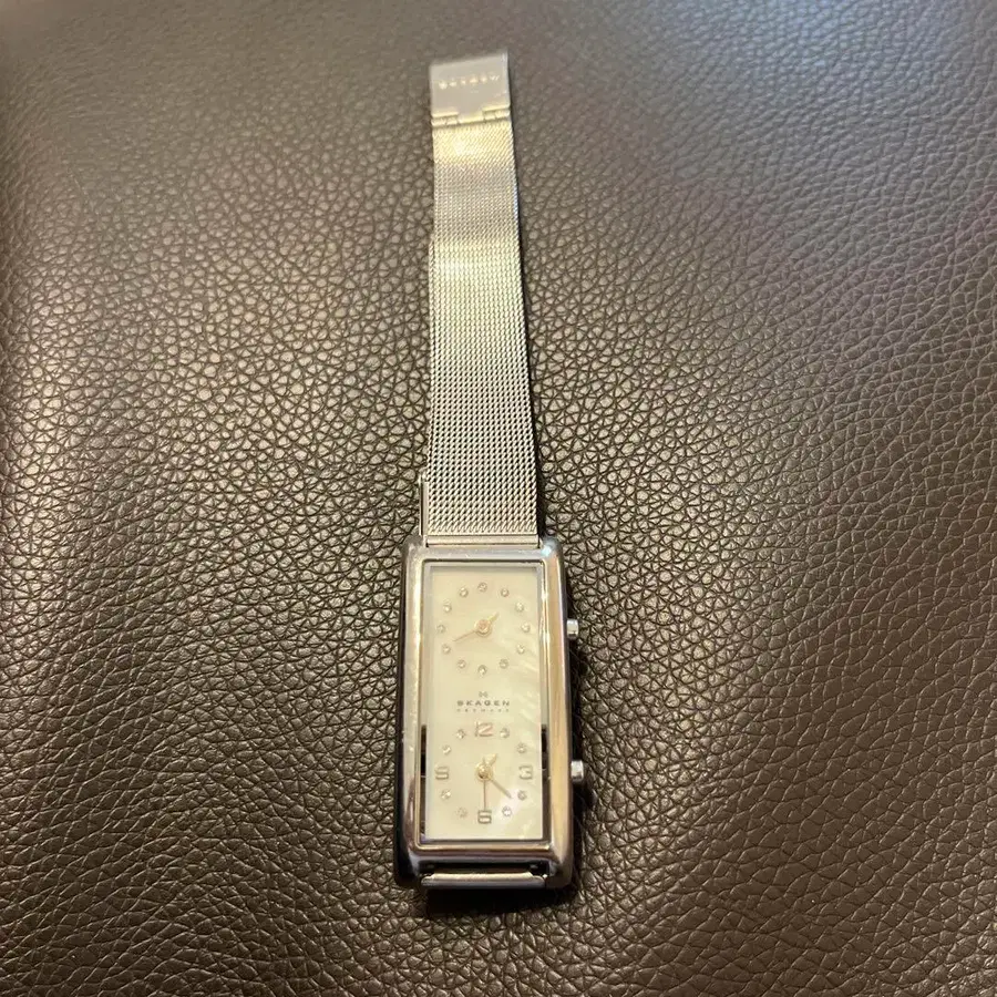 화이트 다이얼의 쿼츠 시계, 메쉬 밴딩 포함. 모델: 쿼츠 시계 밴딩 재질: 메쉬 다이얼 색상: 화이트 케이스 재질: 스테인리스 스틸 특징: 뒷면에 약간의 흠집이 있습니다. 방문해 주셔서 감사합니다. SKAGEN의 더블 페이스 시계 더 이상 생산되지 않는 디자인인 것 같습니다. 꽤 마음에 들었지만, 사용하지 않게 되어 양도합니다. 중고로 구매하여 4년 정도 업무용으로만 사용했습니다. 배터리가 소진된 상태이므로, 번거로우시겠지만 배터리 교체를 부탁드립니다. 본체만 있으며, 상자 등은 없습니다. 다이얼 컬러···화이트 벨트 컬러···실버