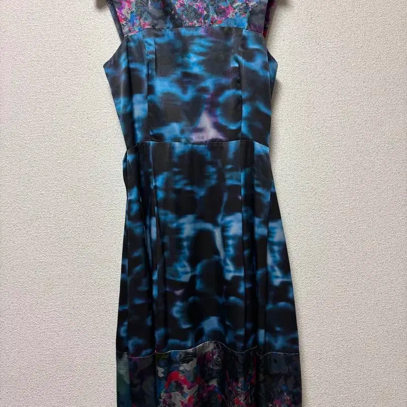 • 로이스크레용 패널 꽃무늬 슬리브리스 원피스 튤 내장