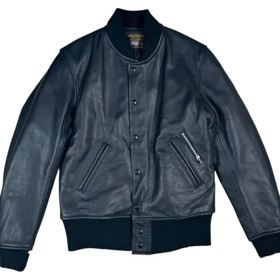 미사용 상품 별주 상품 VANSON 반슨 소프트 카우 가죽 리브 포함 바시티 자켓 블랙 M