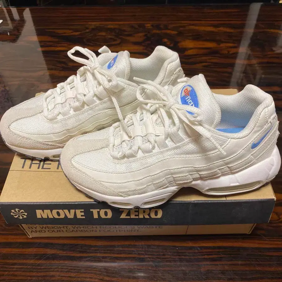 스웨이드와 메쉬의 콤비네이션이 특징인 Air Max 95, 에어 쿠션 밑창으로 착용감이 쾌적합니다. - 모델: Air Max 95 - 컬러: 화이트 - 소재: 스웨이드와 메쉬 - 밑창 타입: 에어쿠션 밑창 실내에서 몇 번만 신은 제품으로 밑창이 마모되지 않았습니다. 사이즈는 23.5이지만, 약간 작아서 판매합니다. 방문해 주셔서 감사합니다.