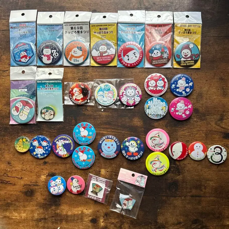 삿포로 눈 축제 제42회, 제45회~제48회, 제52회~제61회 제63회~제71회까지 캔뱃지 28개 핀 배지 2개 기타 눈 축제 캔뱃지 2개입니다. 미개봉 상품도 있지만, 자택 보관 상품이므로, 양해 부탁드립니다. 즉시 구매⭕️입니다.