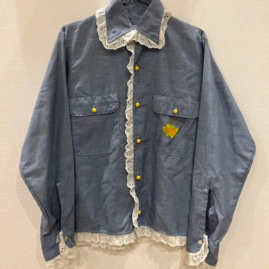 구제샵에서 구매한 샴브레이 셔츠입니다. 구입 후 시착만 한 상태입니다. 프릴과 페인트가 아주 귀여워요(^^) 비교적 새상품급이지만 구제 의류이므로 예민하신 분은 구입을 삼가 주세요. 가슴둘레 약 49cm 기장 약 68cm 패치워크 빈티지 Vintage 70s 80s 90s used 시모키타자와 코엔지 하라주쿠 파나마 보이 fizz