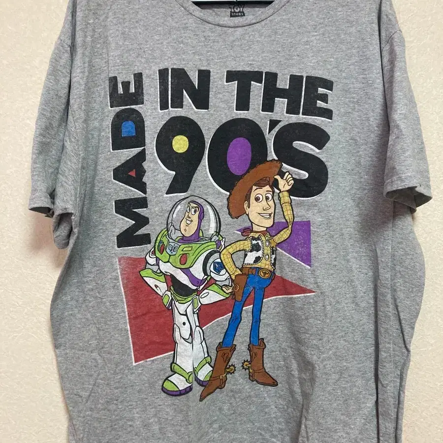 90년대 토이스토리 캐릭터가 프린트된 XL 사이즈 티셔츠. - 디자인: 버즈 라이트이어와 우디 프린트 - 소재: 90% 코튼, 10% 폴리에스테르 - 사이즈: XL - 테마: 90년대 디자인 - 브랜드: 토이스토리 방문해 주셔서 감사합니다.