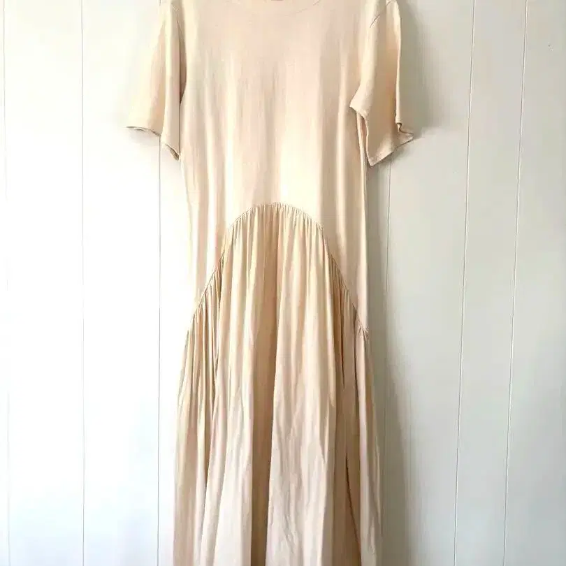 • 언타이틀 반팔 코튼 롱 원피스 베이지 2 B245