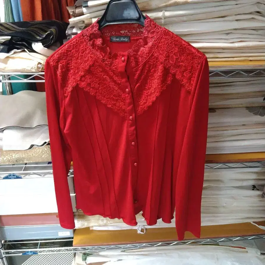 핑크하우스 오버 블라우스 면 100% 프릴 자수 Pink house