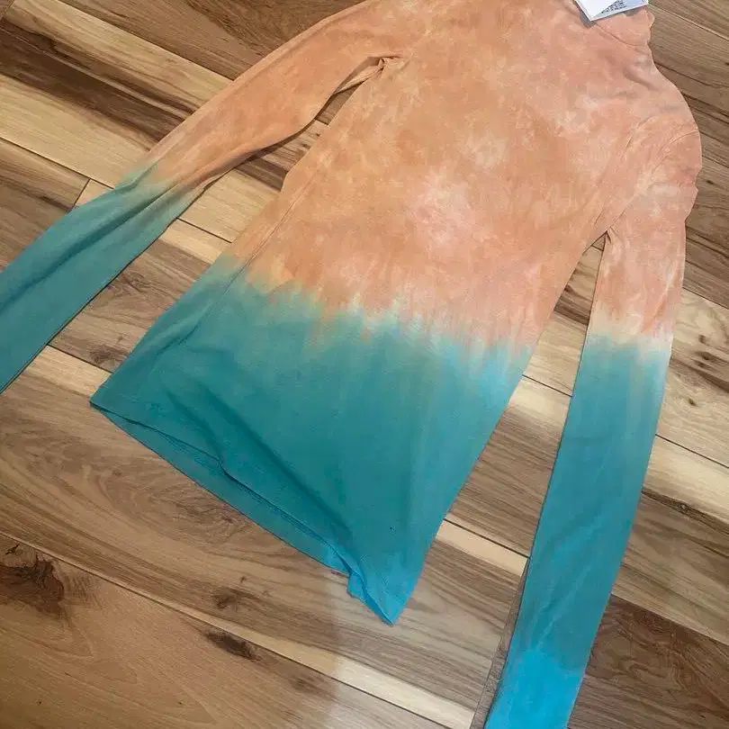 방문해 주셔서 감사합니다. 미사용, KANAKO SAKAI의 오렌지와 터콰이즈 그라데이션 디자인의 긴팔 상의입니다. 정가는 38500엔이었습니다. 미사용이지만, 자택 보관으로 예민하신 분은 삼가 주시기 바랍니다. 부탁드립니다.