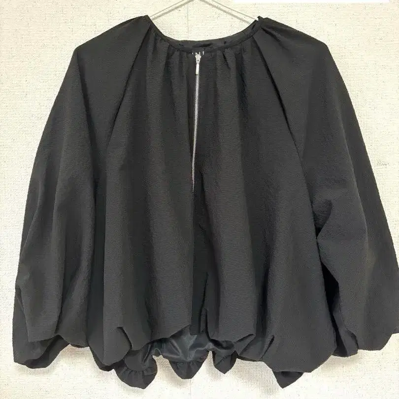 INDIVI 여성용 블루종 블랙 노카라 벌룬