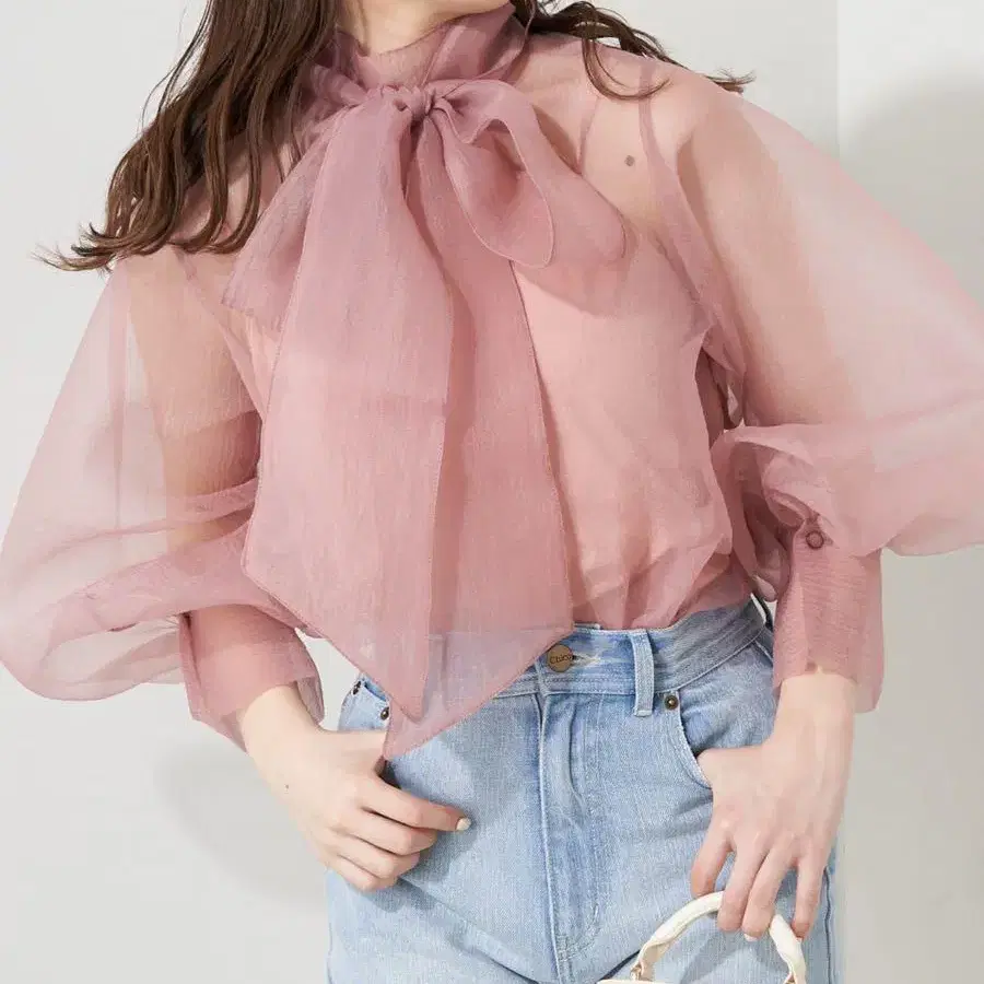 보타이 블라우스에 여성스러운 시어 소재가 등장! ▶상품 포인트 ・보타이 부분은 탈부착이 가능하여 앞뒤로 리본으로 만들거나 보타이 없이 심플하게 입을 수 있습니다. ・부드러운 소재로 리본이 너무 강하지 않아 성숙한 느낌으로 입을 수 있습니다. ・뒷부분이 열린 디자인으로 디테일까지 놓치지 않는 여성스러운 디자인입니다. ▶스타일링 포인트 ・달콤하게 입고 싶으신 분은 앞쪽에서 묶어 보타이 블라우스처럼 입으세요. 뒤에서 묶어 하이넥 블라우스처럼 입으면 우아한 인상을 줄 수 있습니다. 가벼운 소재로 가디건 등의 이너로도 입기 쉽습니다. ▶소재 및 세탁 표시 소재 비율: 겉감 폴리에스테르 100%/안감 폴리에스테르 100% 세탁: 손세탁 텀블 건조: 불가 다리미: 저온 110도까지 클리닝: 드라이클리닝 가능