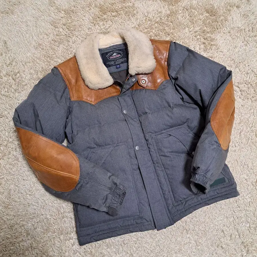 희귀품 쿠시타니 kushitani 다운 자켓 보아 L 사이즈 엘보 패치 집업 소가죽