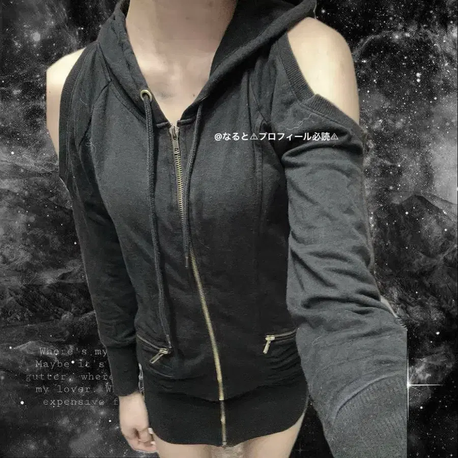 헤이세이 갸루 시크 스타일 후드티 00s 그런지 더블 지퍼 오픈 숄더